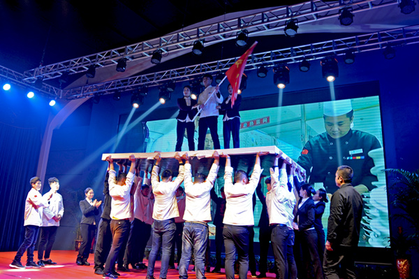 迪尼斯酒店開元店表演的團(tuán)隊風(fēng)采《眾志成城·從頭再來》是公司員工紀(jì)律、業(yè)務(wù)、才藝、禮儀與團(tuán)隊精神的綜合展示,獲得二等獎,獎勵2000元;